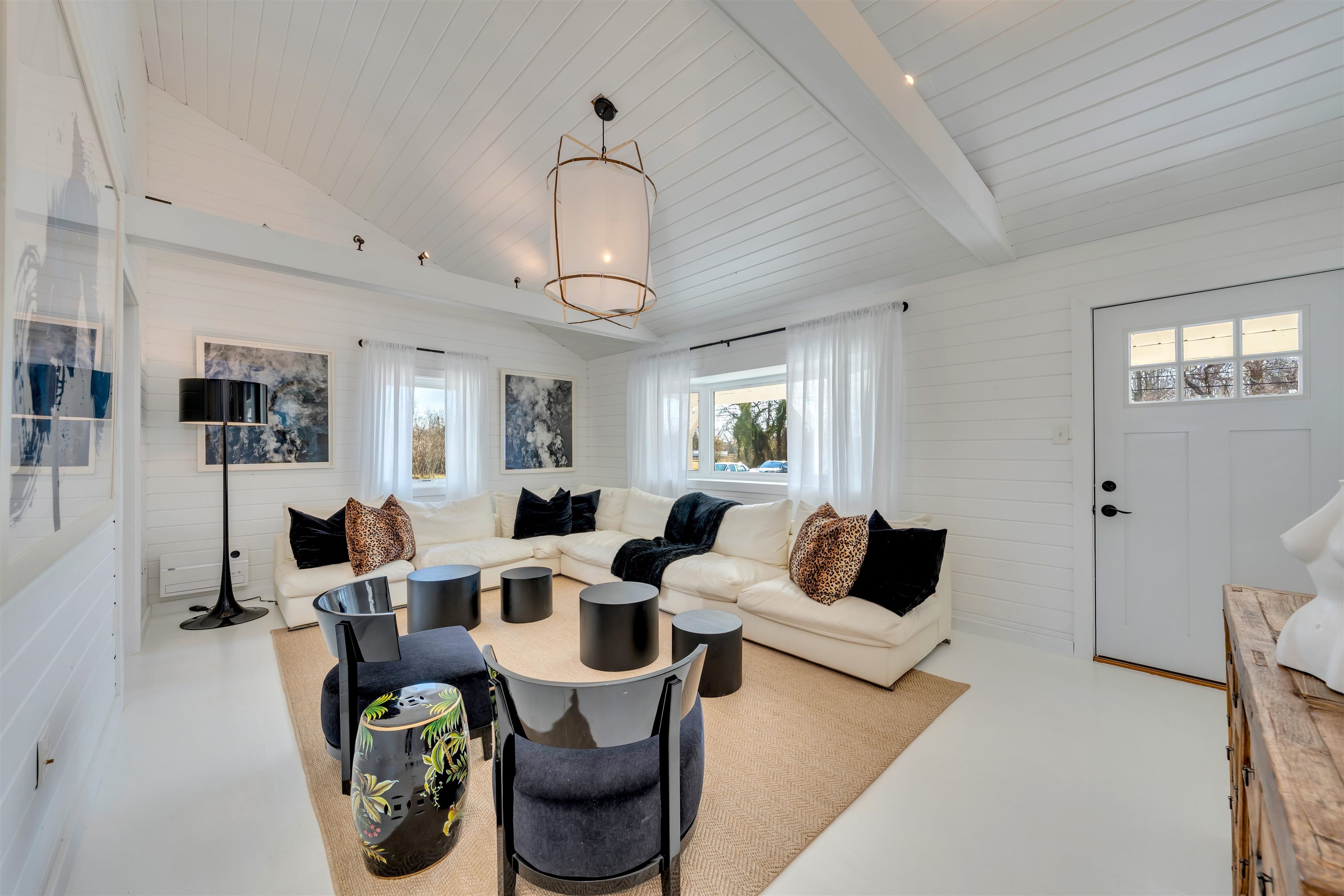 Welcome to 569 New England Road, an exceptional and artfully designed estate set on an expansive 28,743 sq ft lot, that abuts protected green acres. Masterfully conceived by the seller, a former Ralph Lauren designer, timeless elegance is absolutely showcased. The 1,064 sq ft main residence offers 3 beautifully appointed bedrooms and 2 full bathrooms, featuring open, light-filled living spaces, a chef inspired kitchen with a gas stove and granite counter tops, and a full, usable basement with private exterior access. Complementing the property is a striking 1,200 sq ft barndominium, newly converted in 2025, offering a sophisticated one bedroom retreat with a spa-like bathroom and an expansive open concept living, dining, and kitchen area accented by quartz countertops, perfect for guests or extended family. Thoughtful improvements include a new well and septic (2025) and permits already secured for a pool up to 16x24 sq ft, allowing for future resort style outdoor living. Carpets and custom drapes are included in the sale. With a total of 4 bedrooms, 3 bathrooms, 2 kitchens, and 2 living rooms, this rare property delivers unparalleled flexibility, privacy, and design pedigree, just moments from Cape May s renowned beaches, dining, and historic charm.